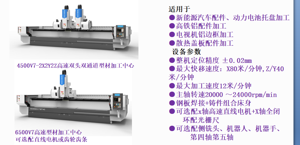 用型材加工中心进行电池托盘边梁切削、雕铣等加工